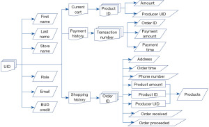 The transactions database saves all transactions that have occurred in the app. After each payment, a unique transaction ID (TID) is generated and used in the transaction database. Detailed payment information is saved here, which includes the OID related to any particular transaction, the payment method that was used, the total amount of money paid, the transaction time, the payer’s UID, and for each product, the product cost, delivery cost, supplier’s UID, amount of product, the PID, and the product’s unit price. The transaction database is highly related to the orders database. In common, one transaction is generated when an order is placed. Figure 6 shows the data structure of the transaction database.