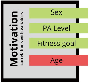 Exploratory analysis of motivation types was conducted, relative to sex, age range, self-reported level of activity, and personal training goals.